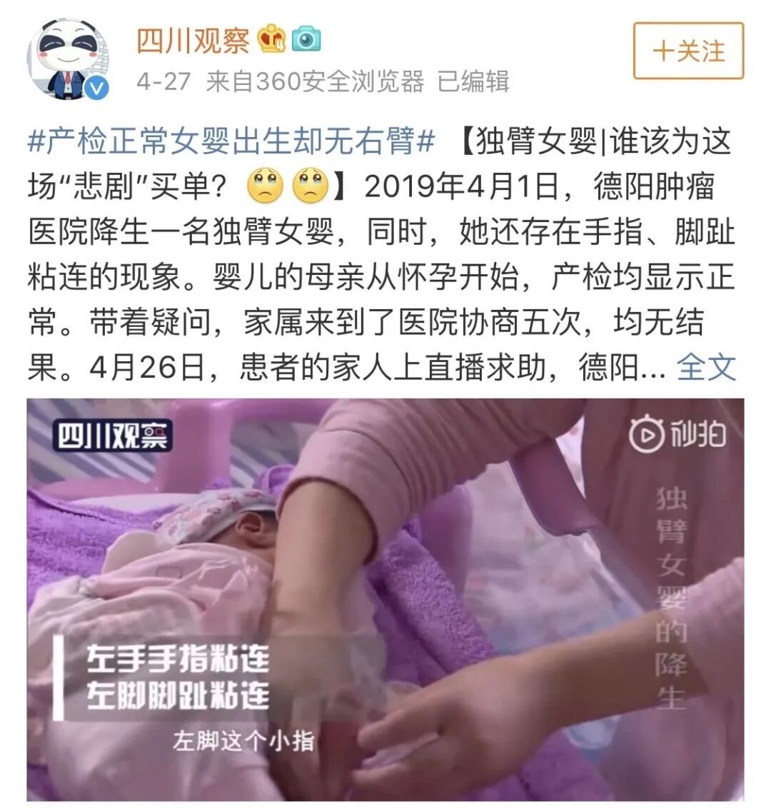前段时间一则“产检正常女婴出生却无右臂”的新闻登上了热搜,让所有的妈妈们都很痛心,尤其是一些还在孕期的准妈妈们,也开始担忧自己会不会遇上这种问题。