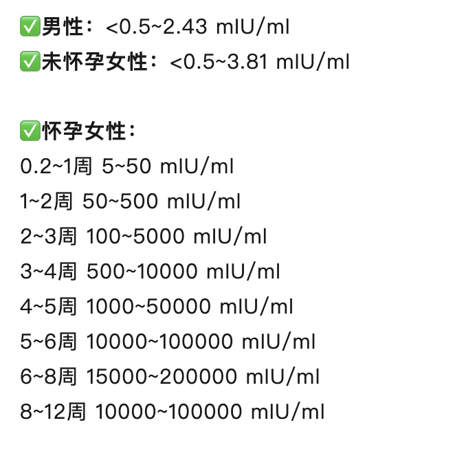 hCG的正常参考范围波动较大,且因人而异,因而在实际应用中,应在确定hCG水平的大致范围后进一步了解其倍增时间(水平增加一倍所需时间)或者两天的增加比例。在妊娠第8~10周,hCG水平增长较快,约每两天增加1倍。