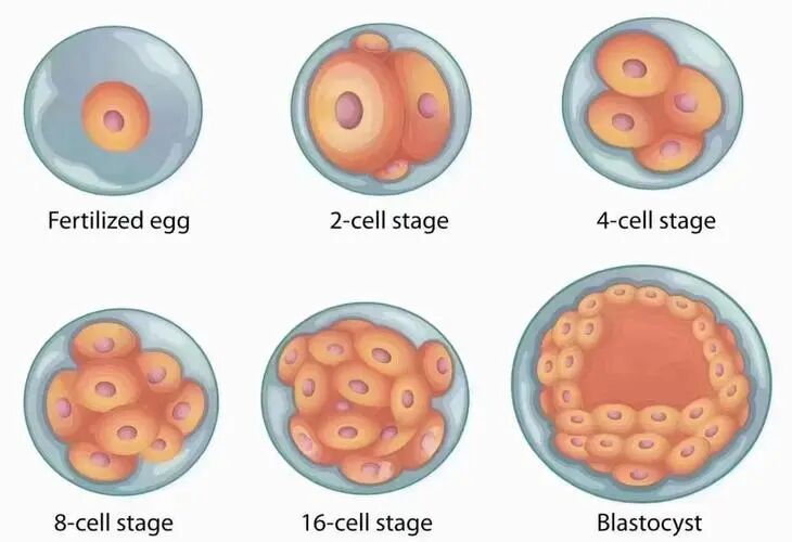 受精之后,每12-24小时胚胎就会分裂一次,直到取卵后的72小时,胚胎会分裂出约8个细胞。到取卵后第3天,医生会用化学或机械的方法打开包裹在胚胎外的透明带,从而帮助胚胎从透明带内孵出。